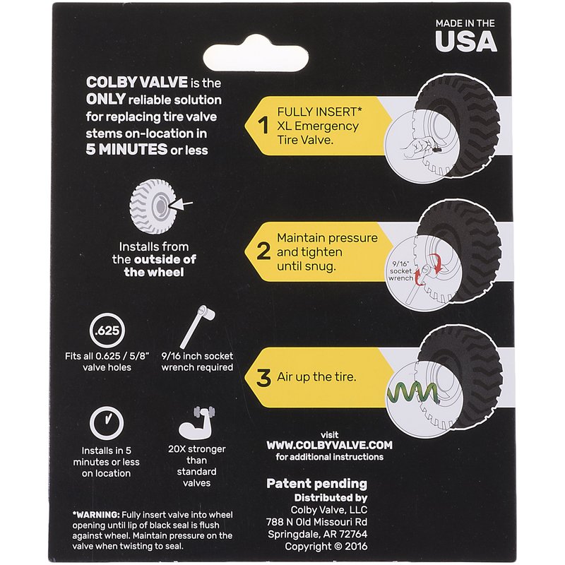Colby Valve XL Emergency Valve Stem - installs from Outside of The Wheel