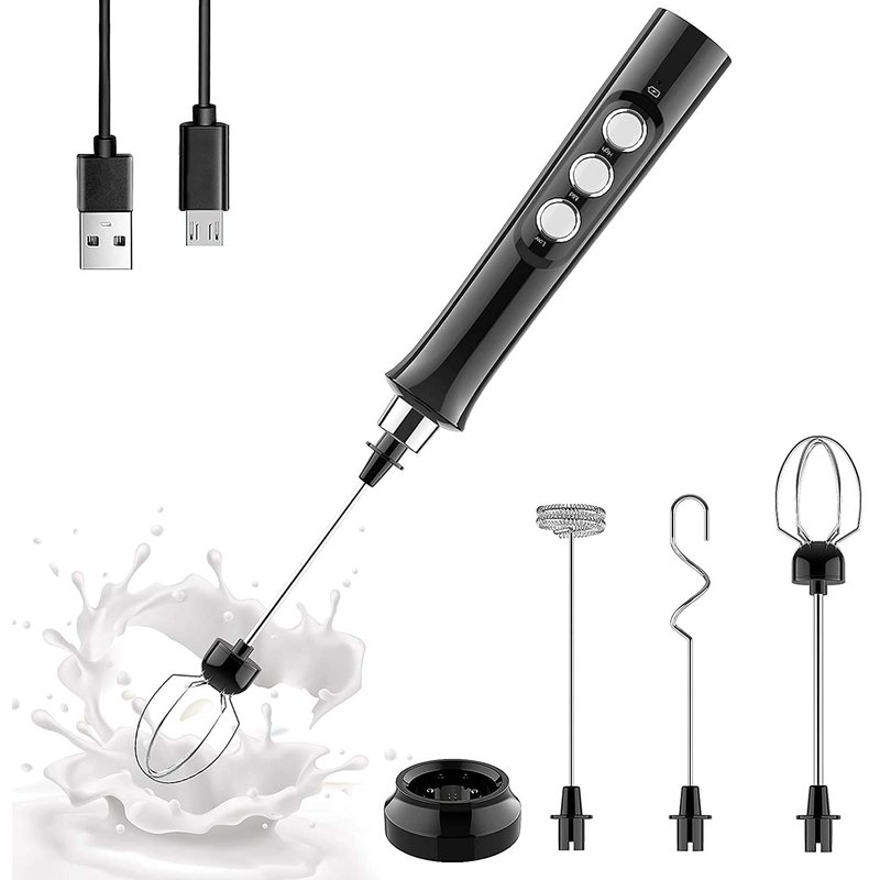 Cold Foam Frother for Coffee, Tea, Chai, Matcha, Latte, Hot Chocolate Milk Frother Easy to Use 3 Speeds With 3 Handles