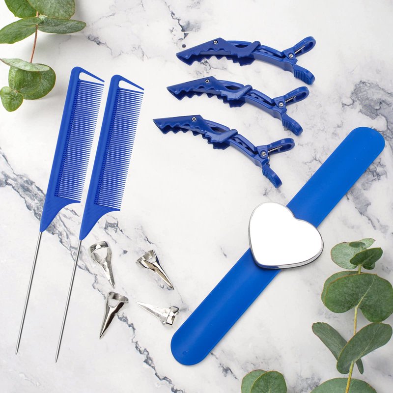 Coldairsoap 17 Pieces Hair Parting Tools Set, Included 8P Hair Parting Ring 2P Metal Rat Tail Comb 6P Hair Sectioning Clip with 1P Magnetic Wrist Sewing Pin Holder for Braiding (Blue)