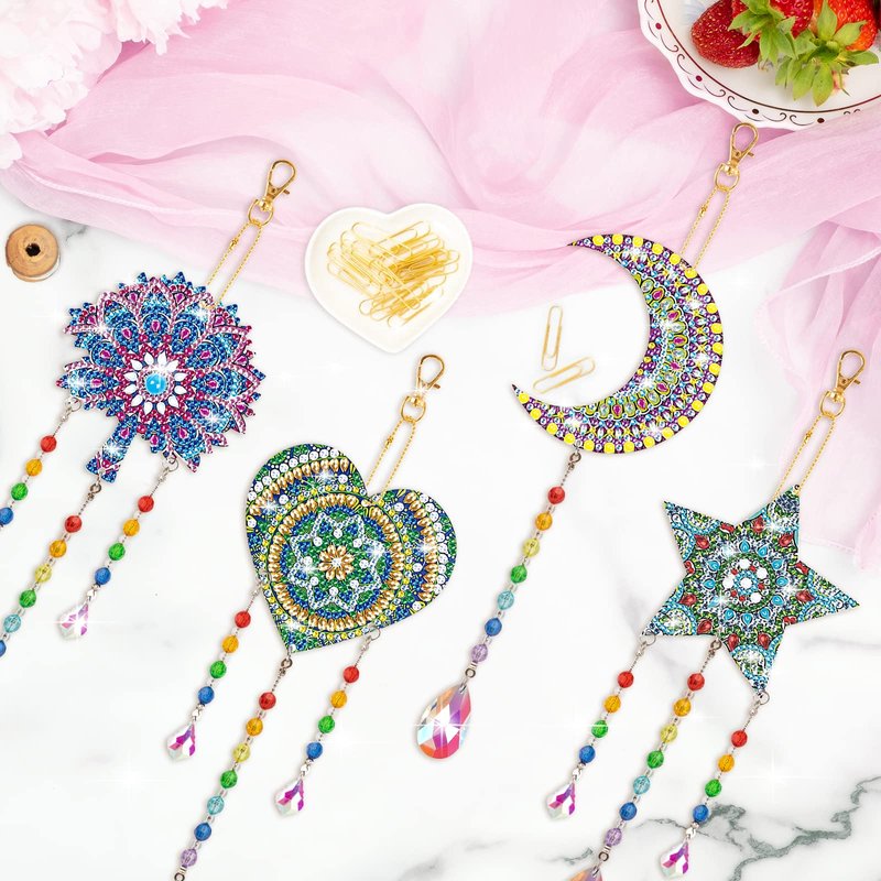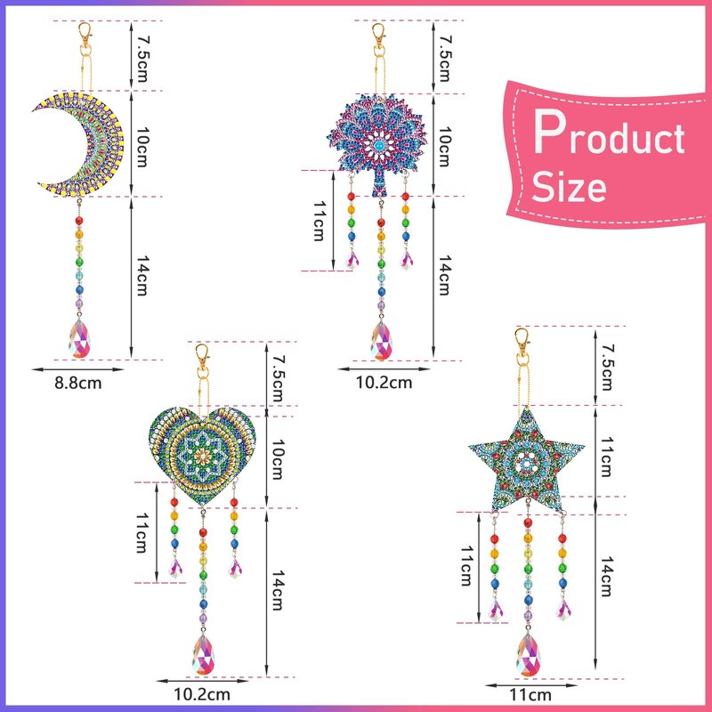 Coldairsoap 4 Pack Diamond Painting Suncatcher, Diamond Painting Wind Chimes Double Sided Crystal Gem Paint by Number Diamond Painting for Home Garden Decoration (Style 1)