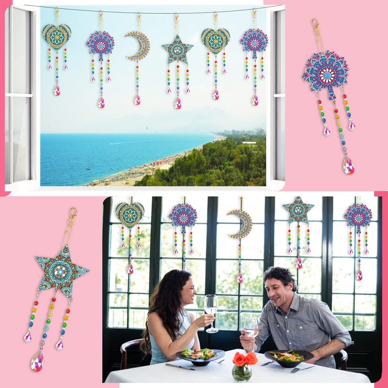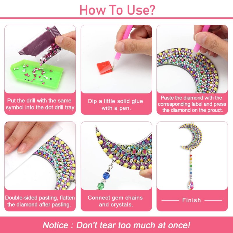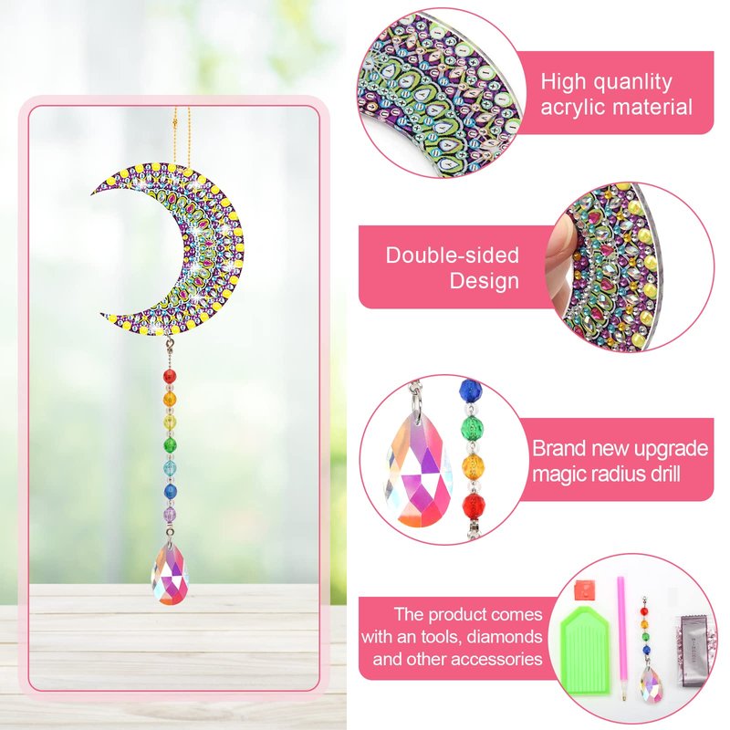 - What You Will Get: You will receive 4 pieces of Diamond Painting Suncatcher stars, moon, trees, and love, each kit comes with a point pen, a tray, clay, enough resin acrylic diamonds, and enough pendant.
