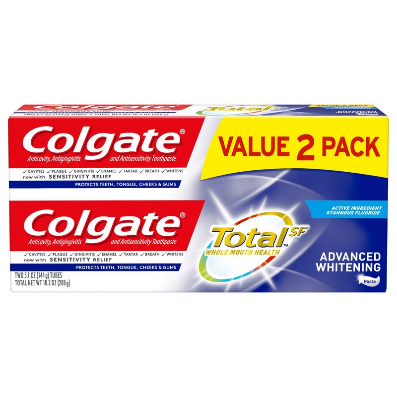 Colgate Colgate Total Advanced Whitening Toothpaste with Fluoride, Multi Benefit Toothpaste with Sensitivity Relief and Cavity Protection - 5.1 ounce (2 Pack), 5.1 Ounce (Pack of 2), 10.2 Ounce