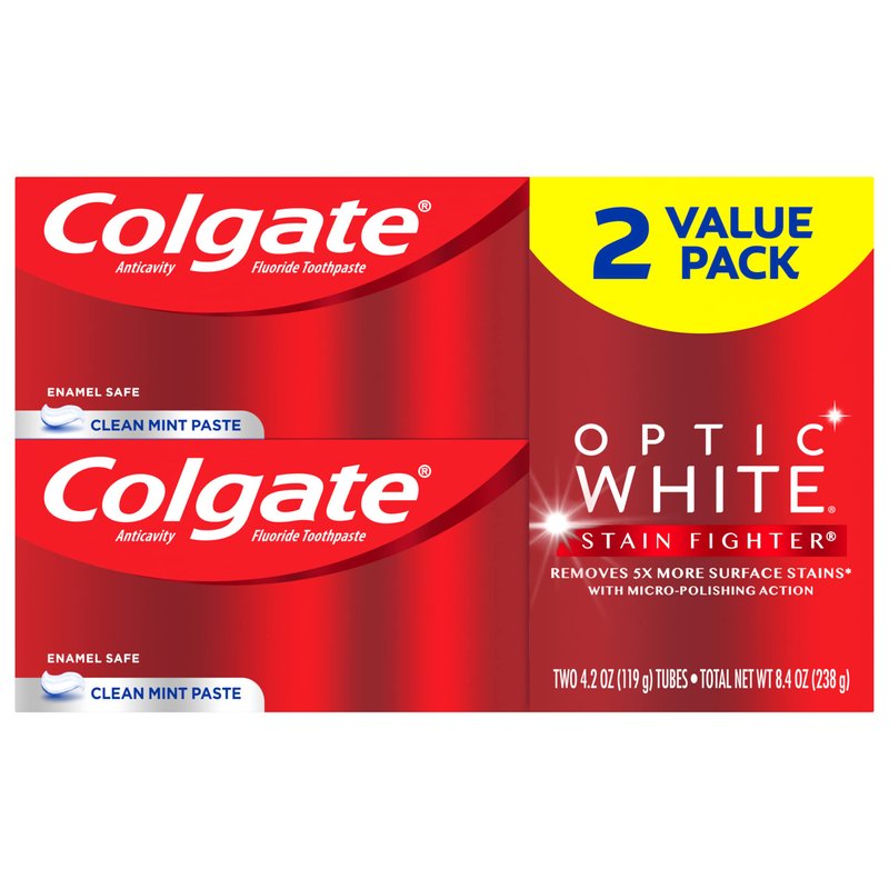 Colgate Optic White Whitening Toothpaste, Stain Fighter, Mint, 2 Count(Pack of 1)