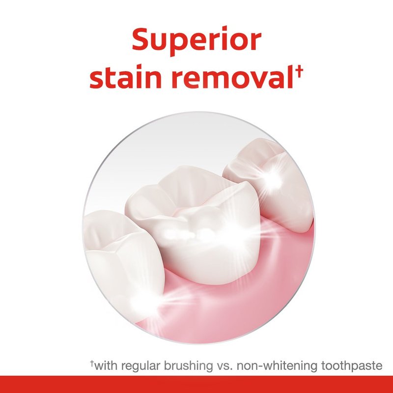 - Whitening toothpaste superior stain removal formula helps to restore teeth's natural whiteness (with regular brushing vs. non-whitening toothpaste)