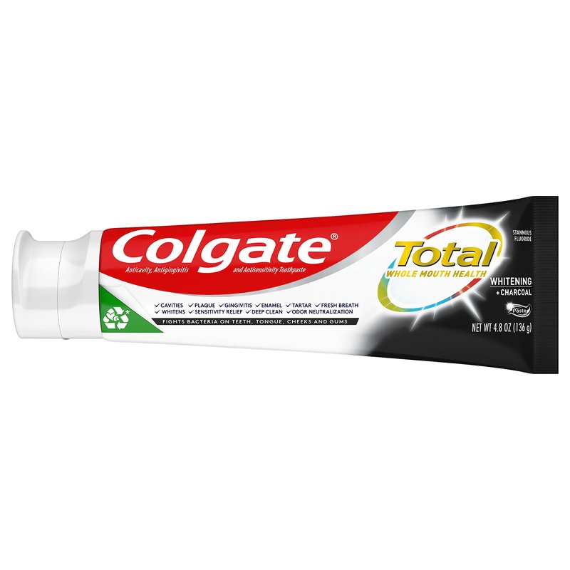 - Includes two (2) 4.8 oz tubes of Colgate Total Whitening + Charcoal Toothpaste, Teeth Whitening Toothpaste