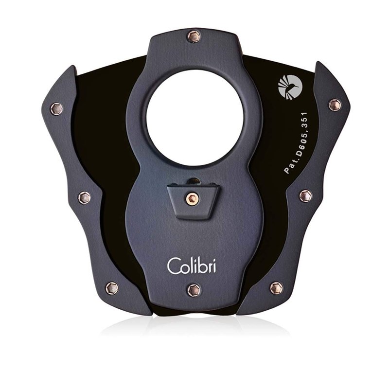 Colibri Cut Cigar Cutter. This Colibri Cutter features a double guillotine cigar cutter with stainless steel blades. Includes a 62 ring gauge aperture for large cigars, and a spring-loaded release. When you add in ergonomic handles for a sure grip and a durable rubberized finish you've got a perfect cutter for any cigar lover. The blades are vibrantly color-coated with a non-stick, easy-to-clean lacquer. Materials: Metal Alloy, Stainless Steel. Dimensions: 0.25"L x 1.75"W x 2.75"H; Weight: 0.5 lbs