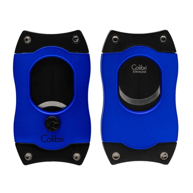 Colibri Premium S-Cut Cigar Cutter - Ergonomic Stainless Steel Spring-Loaded Straight Cut Blade, Ideal for up to 66+ Ring Gauge - Gift for Cigar Enthusiasts (Blue)