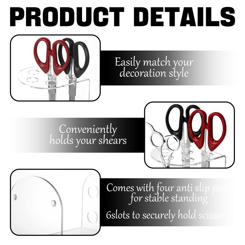 - Stable and Non Slip Design: the vertical acrylic scissor holder for hairdressers comes with 4 non slip mats at the bottom; These ensure your holder stands firmly, preventing accidental knock downs; This thoughtful touch makes your daily usage more convenient, allowing you to focus more on your creative work