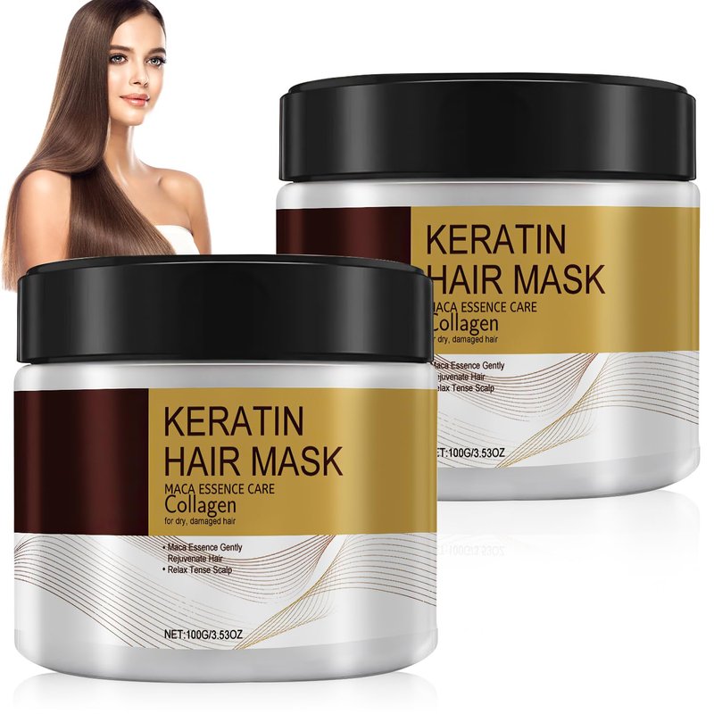 Collagen Hair Mask for Damaged Hair, Argan Oil Collagen Hair Mask, Collagen Hair Treatment Deep Repair, Keratin Protein & Coconut Oil, for All Hair Types (100ml, 2 Pcs)
