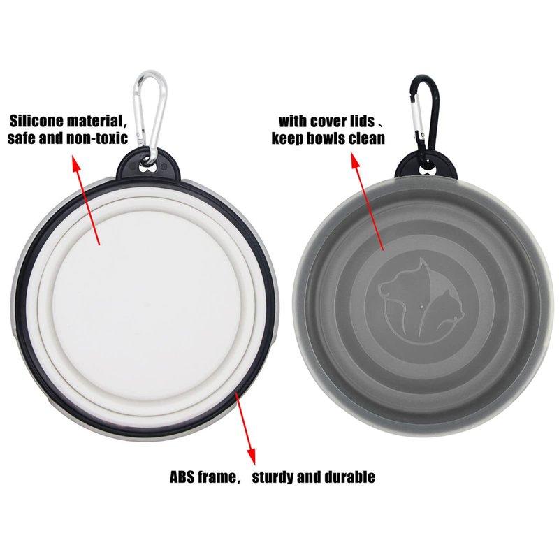 - COLLAPSIBLE & CONVENIENT - The collapsible dog travel bowl is lightweight, convenient for storage because of the collapsible design, save space and easy to expand or fold.Come with cover lids,PLEASE NOTE,these lids are not airtight type, so it is not leak proof,only to use to keep bowls clean from dust and dirty when carry.