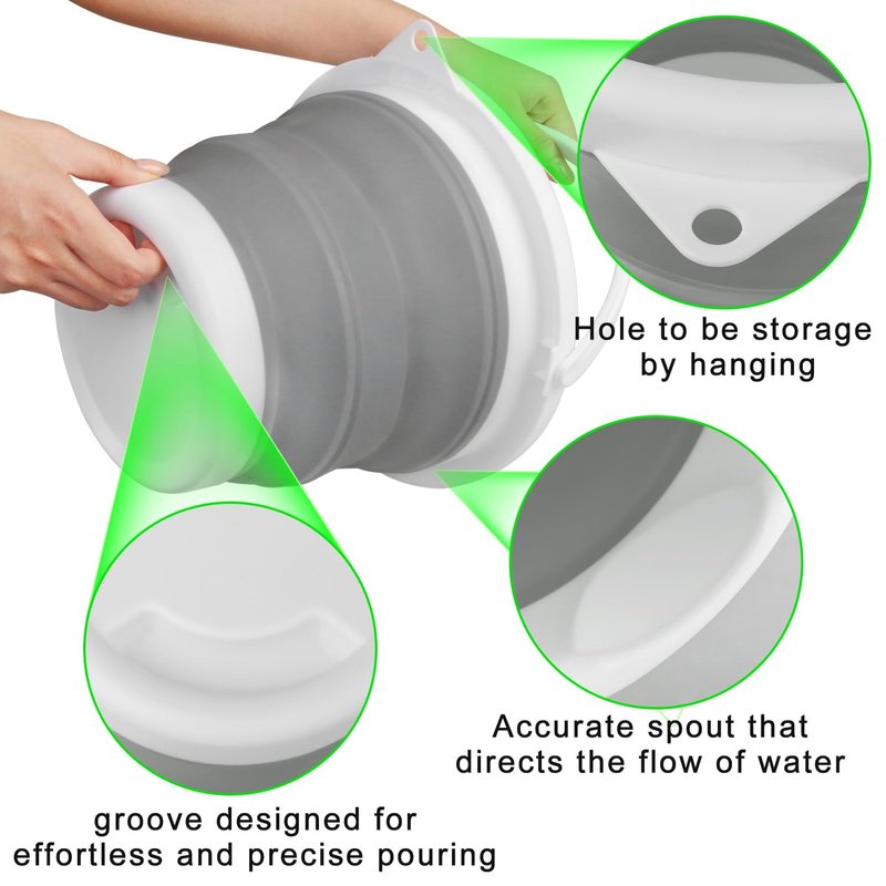 - Multi-Purpose Cleaning Using: This collapsible small mopping bucket made of food grade silicone is soft and stretchable and folds flat in seconds. Compare to 5 gallon bucket with lid or 5 gallon bucket seat, the buckets is more flexible to store. This mop bucket has multi-purpose cleaning using for camping, hiking, boating, fishing, car cleaning buckets, dishes or sinks, beverage ice buckets. For household cleaning supplies such as floor mop and bucket set or wall cleaner with long handle.