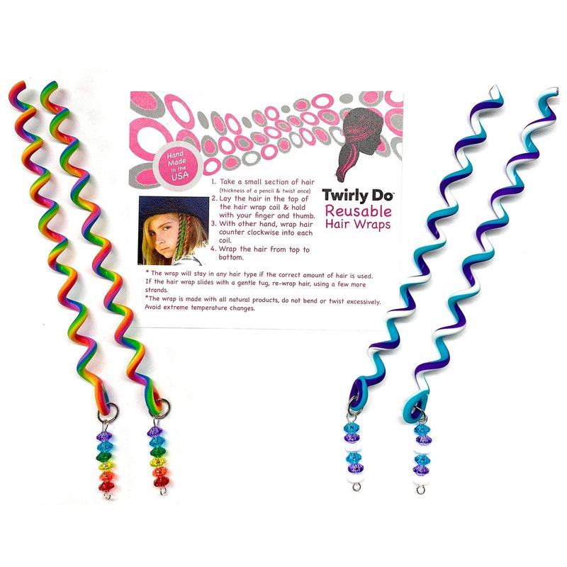 5" Rainbow and (White/Plum/Peppermint), Twirly Do Reusable Hair Wrap twist braid barrette is the cutest hair updo ever! Twirly Do looks like a braid but functions like a barrette. And, it's so easy to put in and take out that even a Daddy can do it. Match Outfits with colors including Ball teams, Dance Teams, School colors and more. Watch our You Tube videos for hair style ideas. Twirly Do or Reusable Hair Wraps video. When you get yours it will come with instructions. We take pride in our hair wraps. We have made them by hand since 2007. Wow! 13 years now.