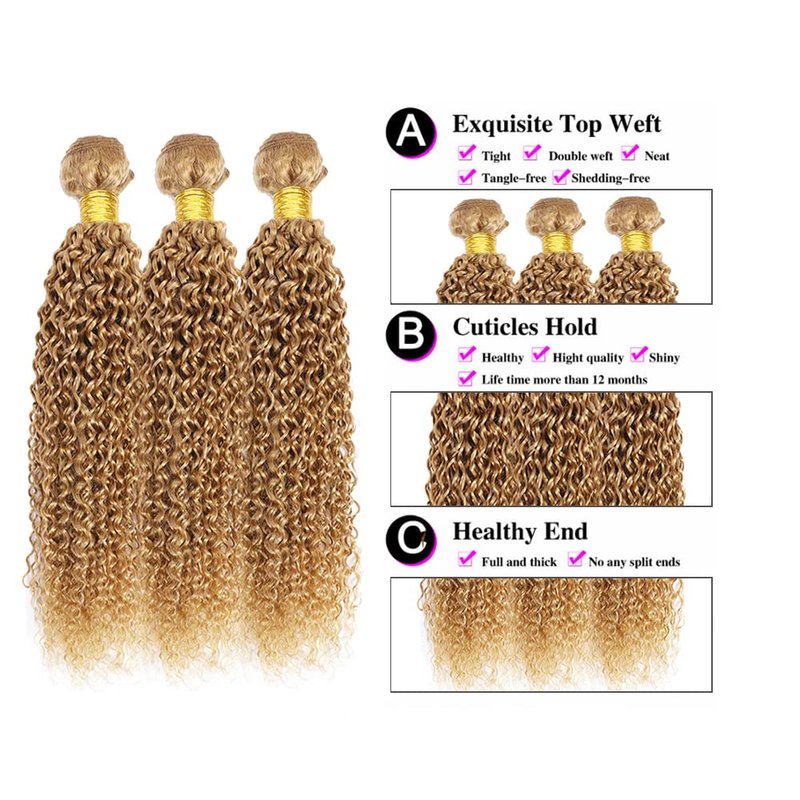 - 3.Hair Color:Blonde Bundles Human Hair Color 27 Blonde Kinky Curly Bundles.