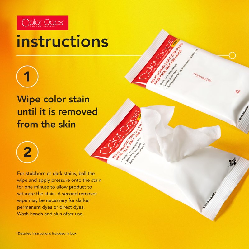 - RESEALABLE CONVENIENCE: Available in a 5-count, resealable package, keep these Color Oops wipes on hand for whenever you color or dye your hair. Reseal wipes to preserve moisture.