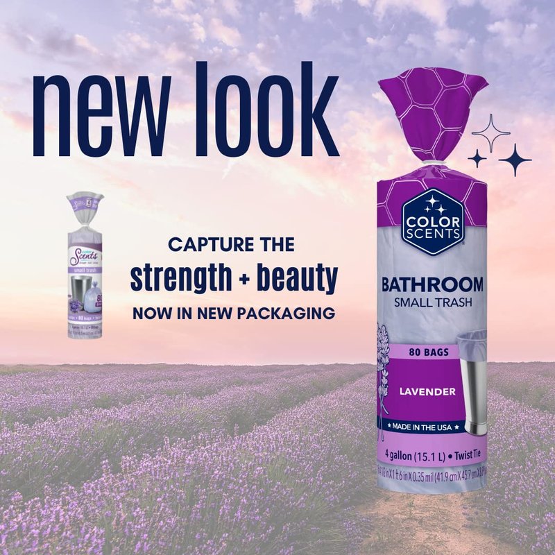 Color Scents Small Trash Bags - 4 Gallon, 80 Bags (1 Pack of 80 Count), Twist Tie - Lavender Bag with Lavender Scent (1 Pack of 80)