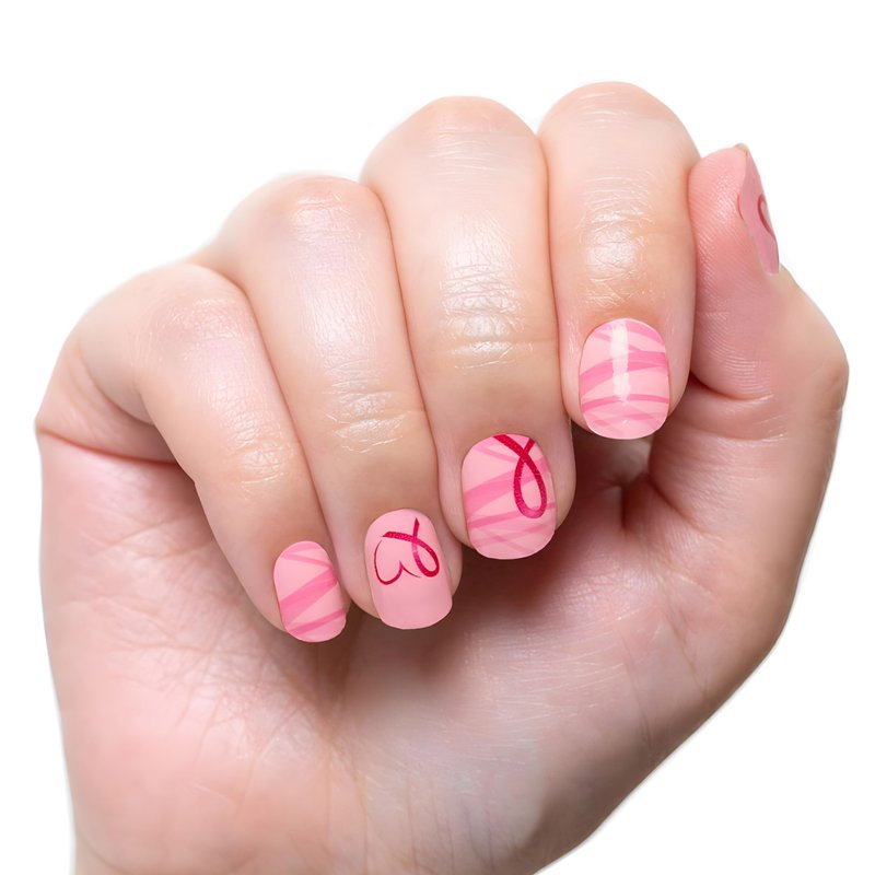 Show your support for breast cancer awareness with Choose Hope, a pink ribbon nail art pattern. Each set includes 16 double-ended nail strips with a creme finish. Easy peel and apply with no dry time. Just apply and go! 100% Real Nail Polish Strips made in the U.S.A.