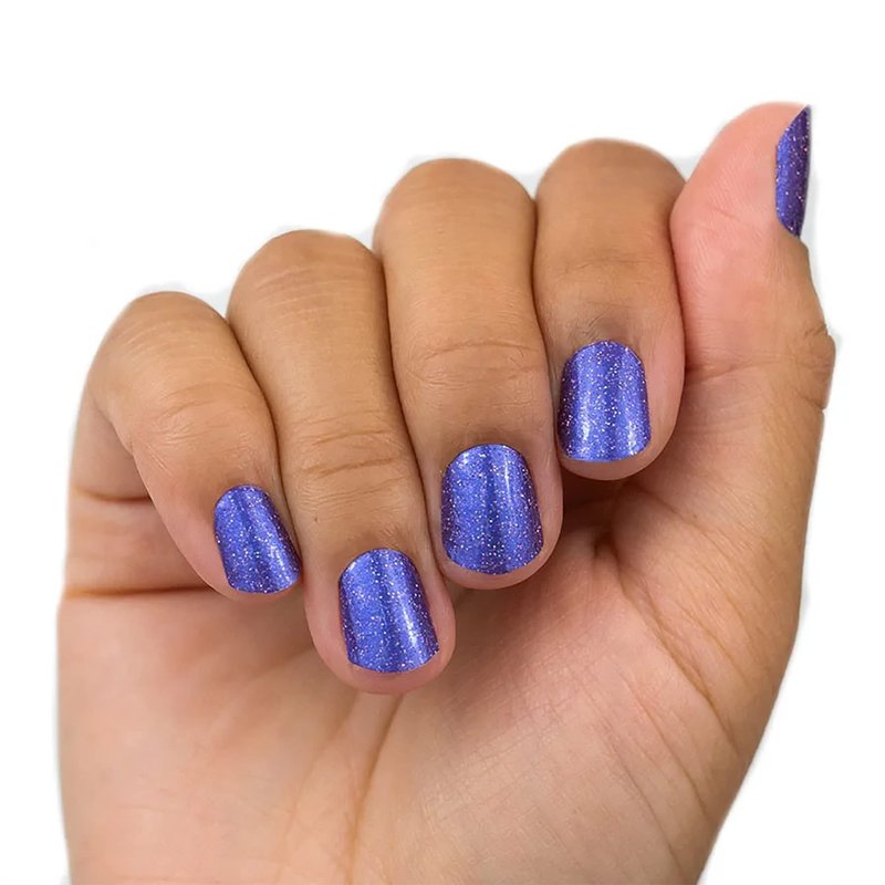 Juneau the Drill is a deep, wintry indigo shade with holographic sparkle. Each set includes 16 double-ended nail strips with a Glitter finish. Easy peel and apply with no dry time. Just apply and go! 100% Real Nail Polish Strips made in the U.S.A