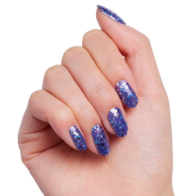 It's more fun in NOLA! Get party-ready with Mardi Gras's sparkling teal, silver, and purple glitter on dusty blue. Each set includes 16 double-ended nail strips with a Glitter finish. Easy peel and apply with no dry time. Just apply and go! 100% Real Nail Polish Strips made in the U.S.A