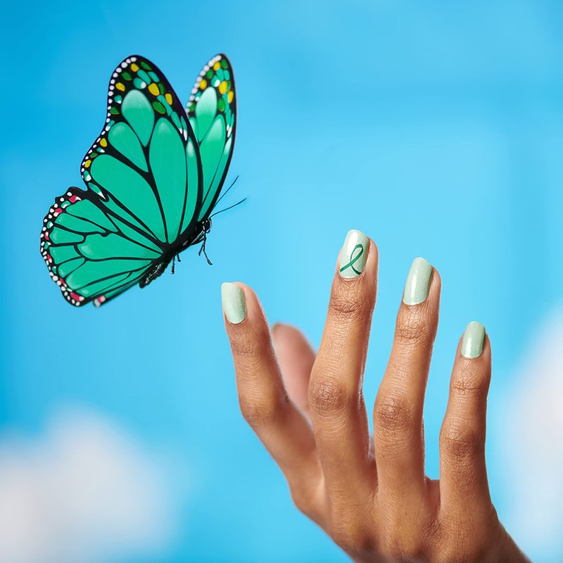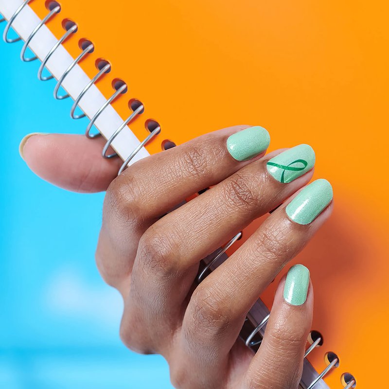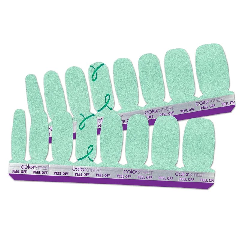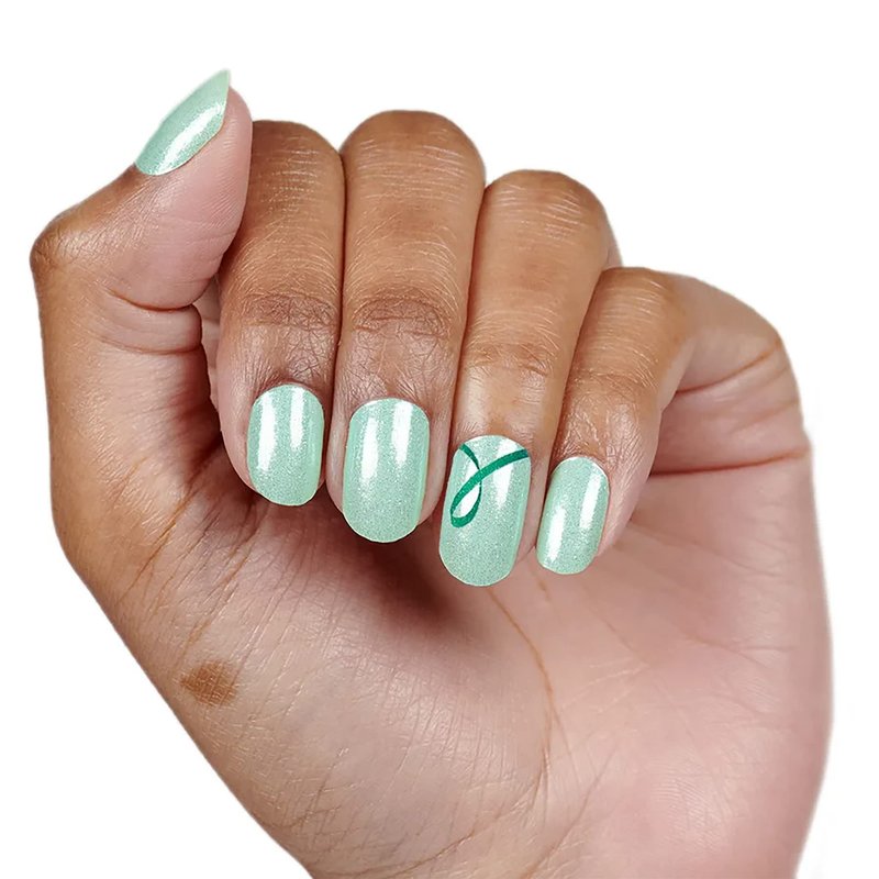 Show your support for mental health awareness with Take Care, a shimmering mint with a green awareness ribbon. Each set includes 16 double-ended nail strips with a shimmer finish. Easy peel and apply with no dry time. Just apply and go! 100% Real Nail Polish Strips made in the U.S.A.