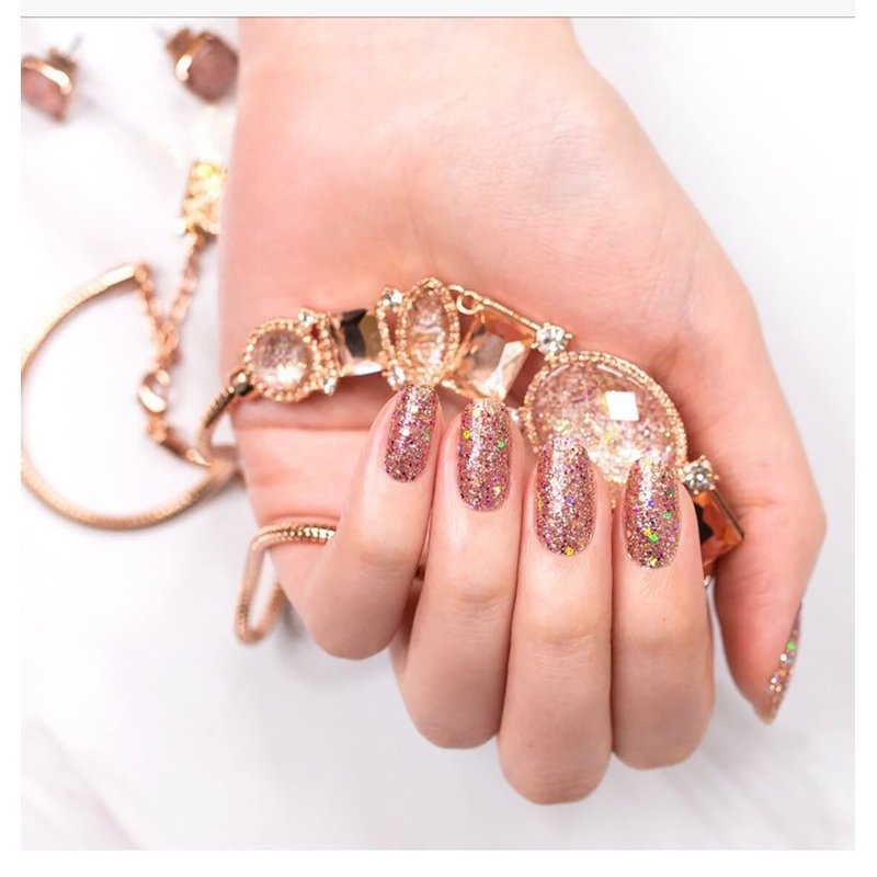 - Tokyo Lights' pink gold, fuchsia, and holographic sparkles are perfect for a night on the town.