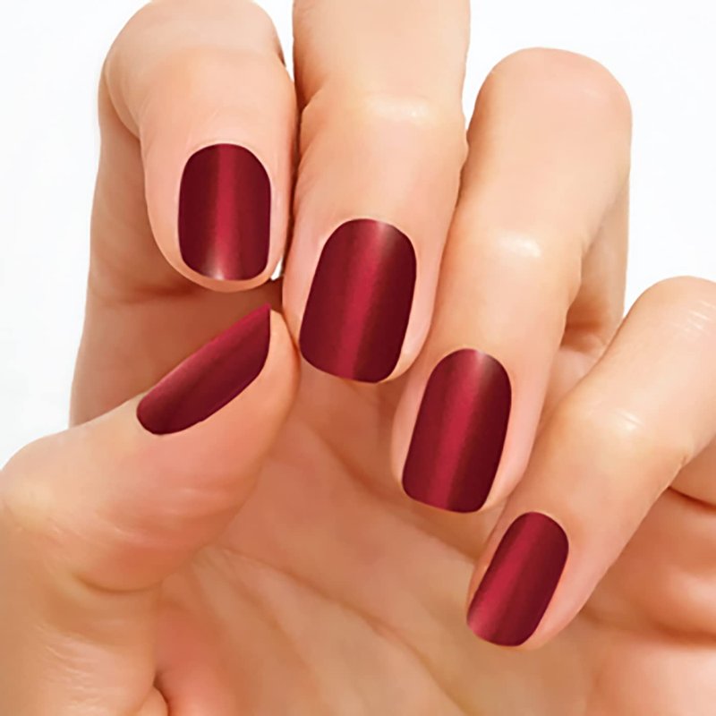 This deep, shimmery scarlet is a timeless shade you can wear year-round. Each set includes 16 double-ended nail strips with a shimmer finish. Easy peel and apply with no dry time. Just apply and go! 100% Real Nail Polish Strips made in the U.S.A.