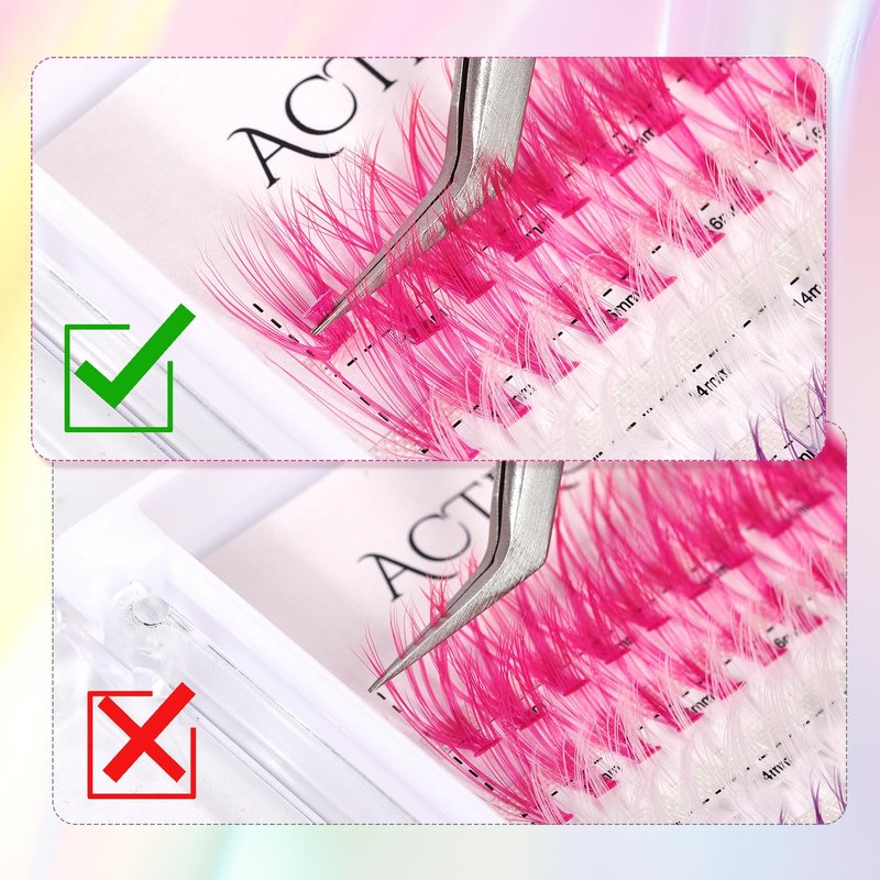 - 【Specifications】120Pcs Classic Lash Clusters 40D,0.07mm thickness, 12mm and 14mm lengths individual lashes.Our colorful cluster lashes come in six colors that resemble a rainbow, including pink, red, white, green, blue, and purple.The lash with 100% handmade craft, high quality synthetic fibers, and totally cruelty-free!