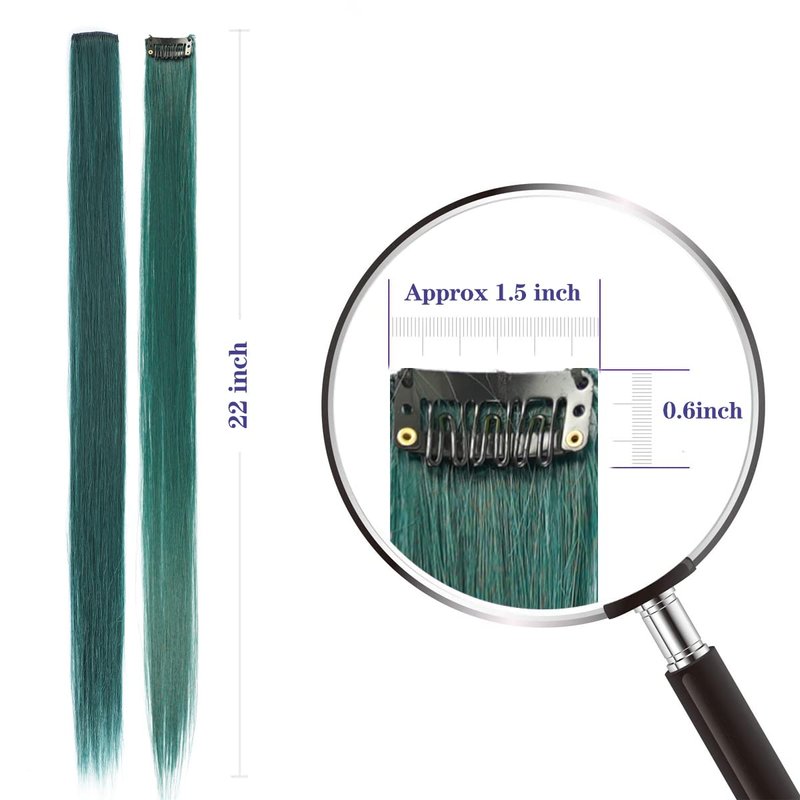 Colored Hair Extensions Sleekcute, 10 Pcs Straight with Polaris Green, Clip in Synthetic Hairpieces 22Inch, Party Hightlight Colorful Hair Streak Halloween Christmas Cosplay Gifts