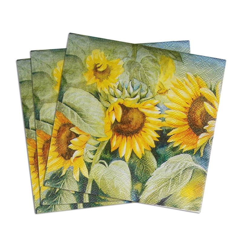 Colored Paper Cocktail Napkins, 20 Count Shabby Chic Napkins for Wedding, Dinner Tea Party Shower, Sunflower