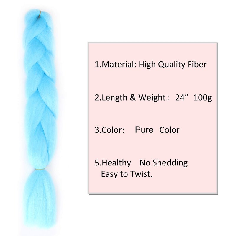Colorful Braiding Hair Extensions 24 Inch 3 Packs Synthetic High Temperature Jumbo Braids Hair Crochet Hair Extension for Braiding. Blue.