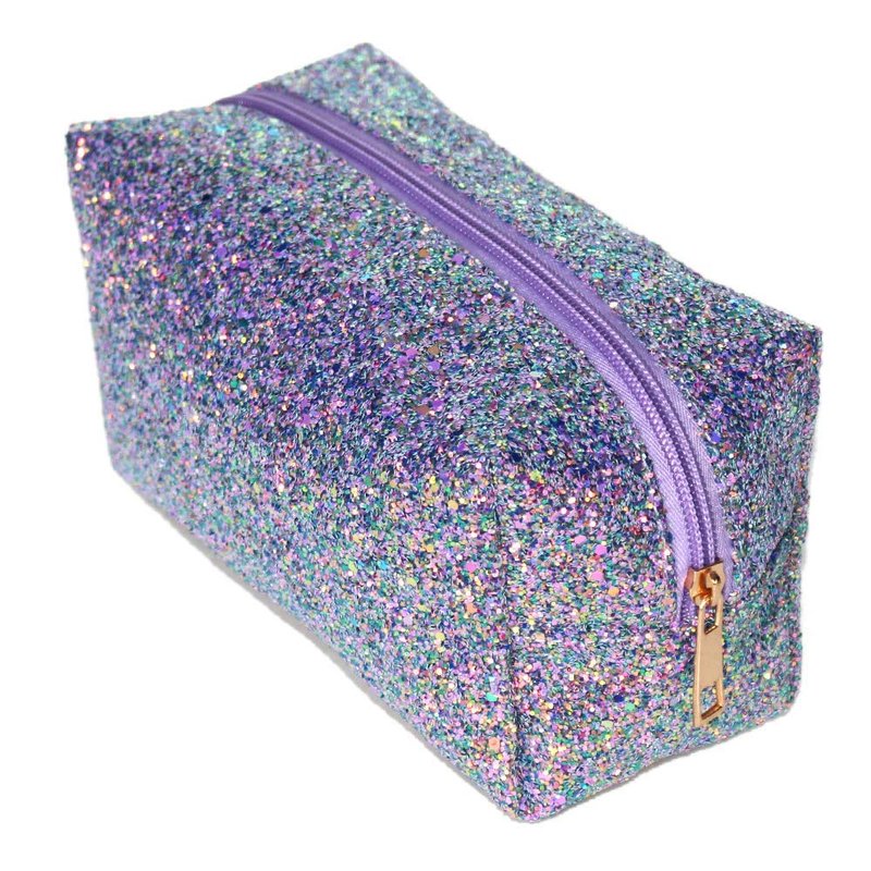 Colorful Glitter Shine Cosmetic Pouch Waterproof Zipper Handbag Carry Case Organizer Travel Case (purple)