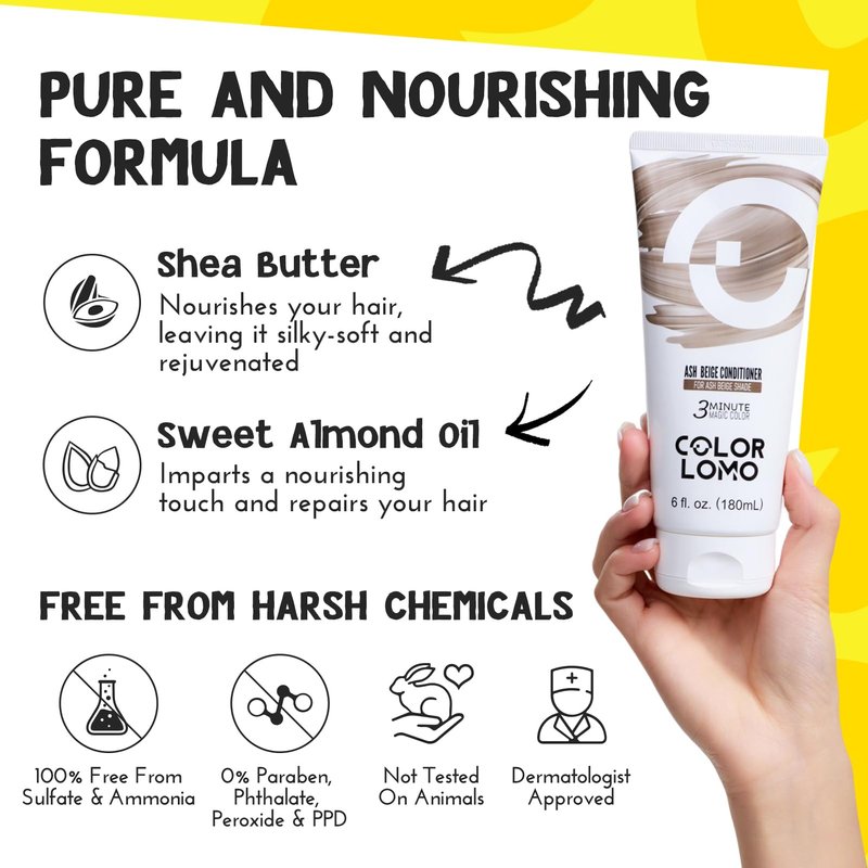 - ✅ VIBRANT COLOR: COLORLOMO Ash Beige Conditioner creates a sophisticated ash beige hue. Perfect for platinum to medium blonde bleached hair. Tints hair as dark as 6 degrees.