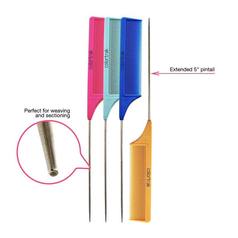 - STYLISH AND COLORFUL: Colortrak combines the ideas of function and style to create amazing salon-ready options. These combs live up to the Colortrak name and deliver on a exciting level of fashion. Four brushes come in the unique colors; Orange, Teal, Blue, and Pink. As with all Colortrak products; Style is always a given.