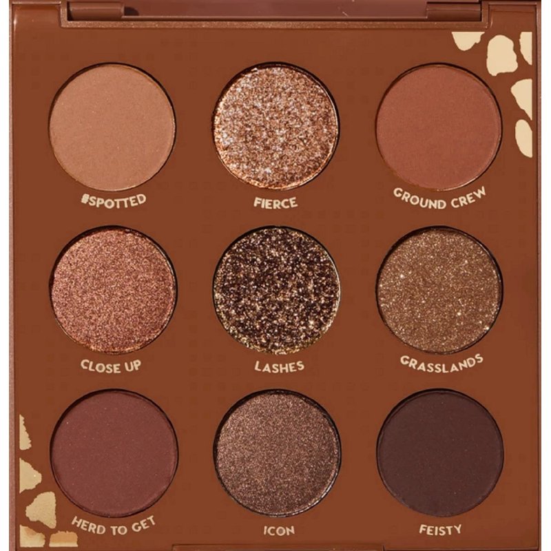 the Colourpop WILD CHILD Eyeshadow Palette has Matte Metallic Sparkle Pressed Glitter Powder.it comes in the 9 diffrent shades of brown.
