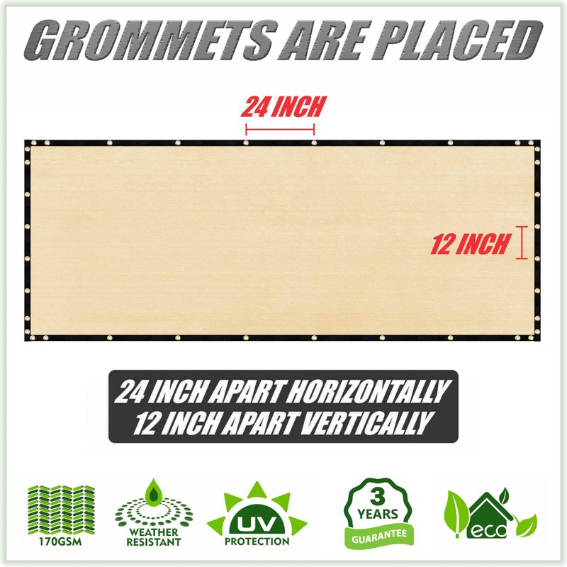 - ★【Comes with the Extra Stainless Grommets and Reinforced Binding】: Grommets are made of stainless copper, each corner has 4 grommets (compares to similar products on the market only have 1-3 grommets), more grommets are placed evenly along all edges, 12 inches apart vertically, 24 inches horizontally. All edges are covered with Beige reinforced 3-inch binding (1.5-inch on each side). The grommets and bindings help the screen to hold up in the wind.