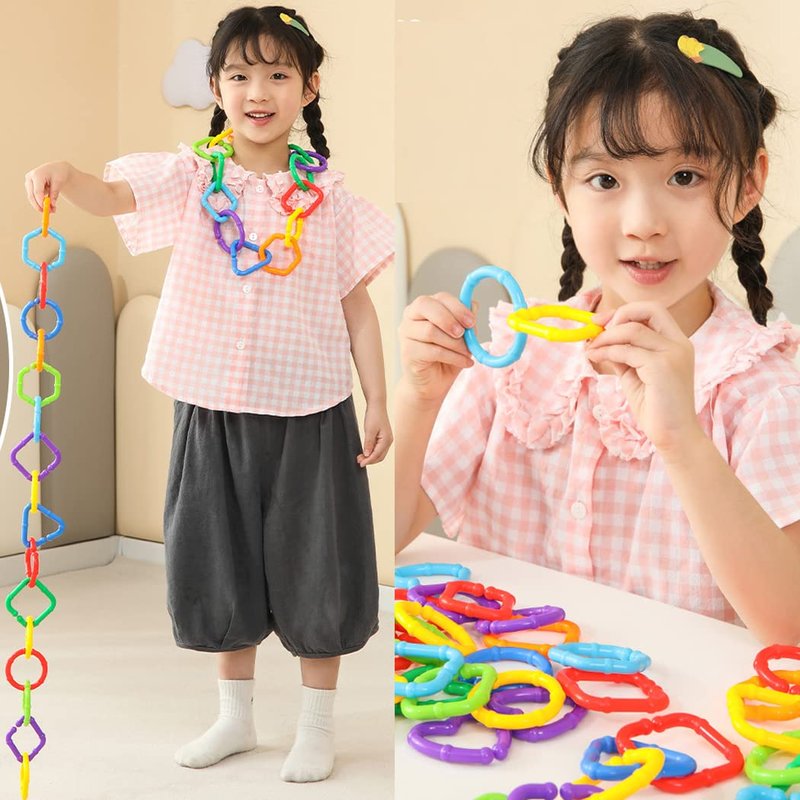 Smooth, Bright and can dicovery more fun. Link, hang, and twist! Kids have such great time with these big chubby links. Make a chain, a house or a free form design. Pull them apart and start over again. So many possibilities expand the imagination and reward young creative minds. Open-ended play for boys and girls for color matching, motor skills, thinking skills, visual development and hand eye coordination.