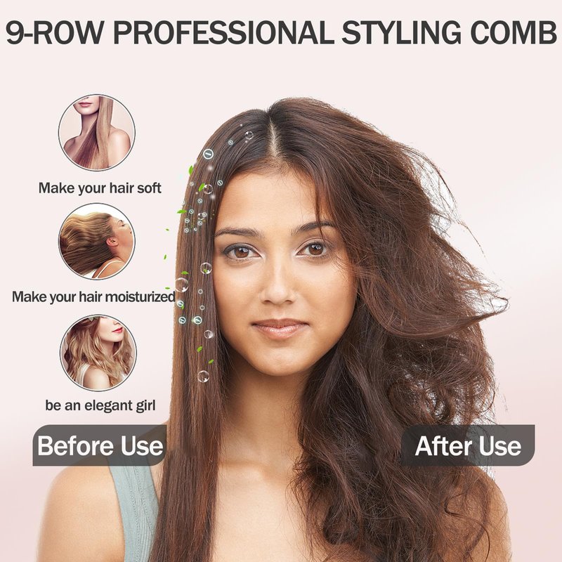 - 【HYGIENE AND EASY MAINTENANCE】 This 9-row classic styling brush features a removable design that can be easily removed and cleaned, promoting hygiene and simplifying maintenance tasks for worry-free daily grooming.