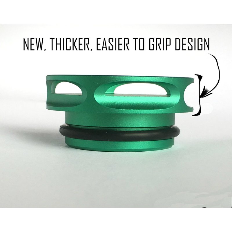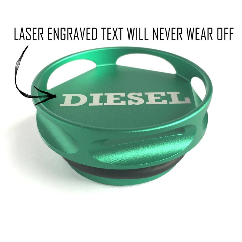 - The DEF cap features a Smooth and EASY TO GRIP handle that will SLIDE and LOCK into place with a smooth-as-butter feel! Machined from AIRCRAFT GRADE Aluminum and Anodized Green & Blue with laser logo to help ensure no fueling mix-ups