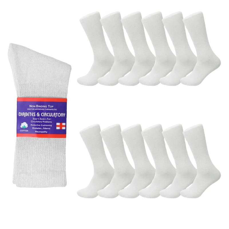 Comfort Doctor Approved Diabetic Crew Socks, Non-Binding Circulatory Cotton Cushion Crew Socks For Men’s Women’s 12-Pairs Socks Size 9-11