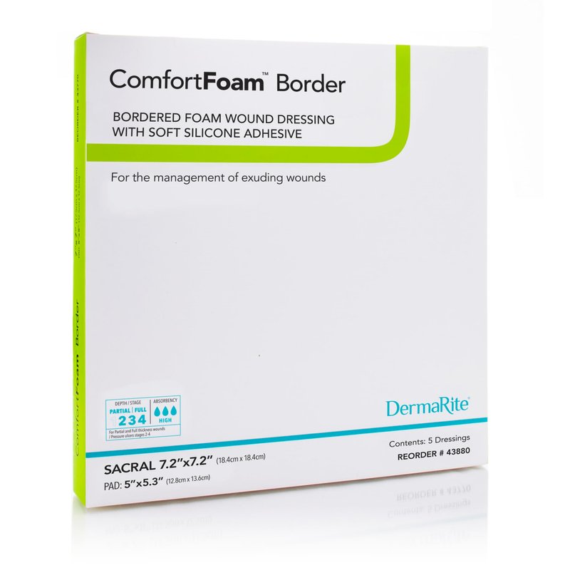 - ComfortFoam Border is a highly absorbent self-adherent silicone foam dressing consisting of a soft silicone contact layer, a flexible polyurethane foam pad and a vapor-permeable, moisture-proof outer film