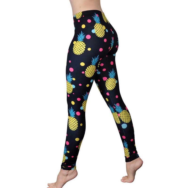 Comfy Yoga Pants - Soft Milk Silk Workout Leggings for Women - Fun Lightweight Printed Yoga Leggings (Pineapple Love, US 4-10)