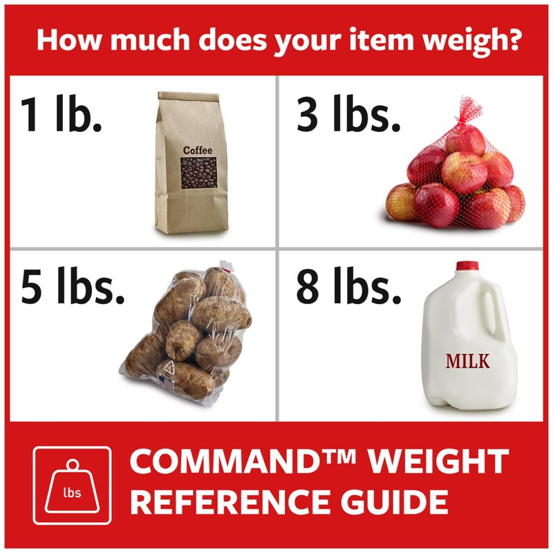 - INCLUDES – 2 clear hooks, 4 medium strips; 1 hook holds 2 lbs