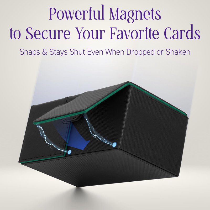 - MAXIMUM SECURITY: The powerful magnets on our card deck boxes summon an impenetrable force field around your decks; Secure your favorite cards with the three snap-and-shut covers, designed to ensure your arsenal is locked down tight—even if you accidentally drop it mid-battle or during your victory dance.