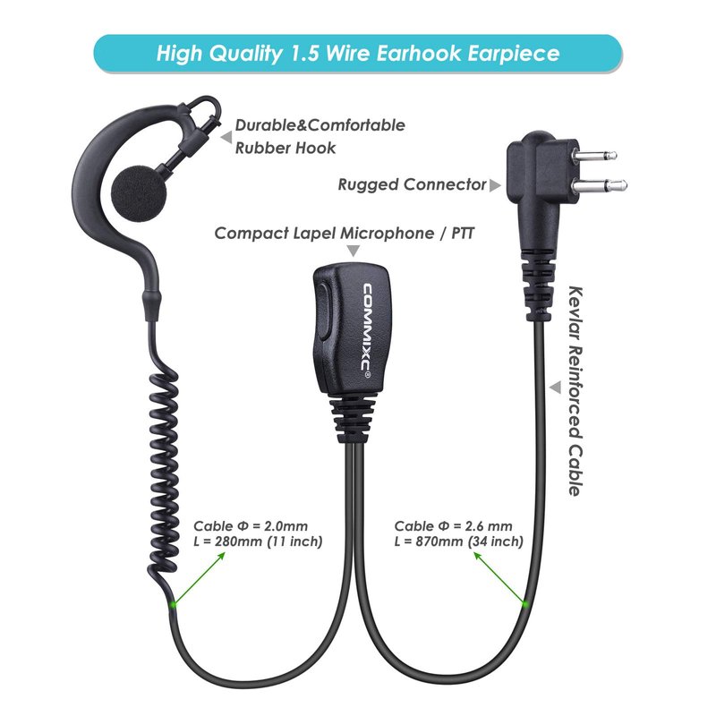 - HIGH QUALITY SOUND - The two-way radios headphone delivers crisp, clear sound even in noisy places, showing a meticulous and high-quality sound experience. Professional electroplated metal pin, Two-pin standard diameter 2.5mm and 3.5mm, space of two-pin 5mm, uses electroplating anti-oxidation design, effective to improve the life of the headset, avoid the poor contact situation.