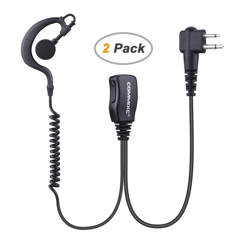 COMMIXC (2 Pack) Walkie Talkie Earpiece, 2-Pin 2.5mm/3.5mm G Shape Walkie Talkie Headset with PTT Mic, Compatible with Motorola Two-Way Radios