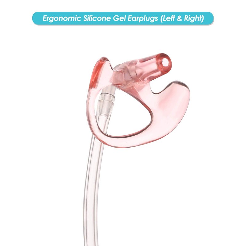 - ERGONOMIC EARPLUG - The 2-way radio earpieces feature a pair of medium size ergonomic silicone gel earplugs (Left & Right) that fits snugly in your ear canal, reduce the vacuum pressure generated by single headphones, and not easy to fall, wear a long time will not feel tired.