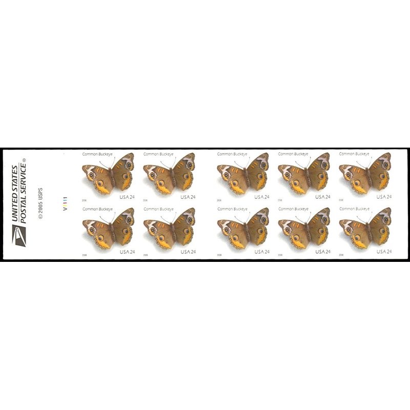 Common Buckeye Butterfly, Full Booklet Pane of 10 x 24-Cent Postage Stamps, USA 2006, Scott 4001