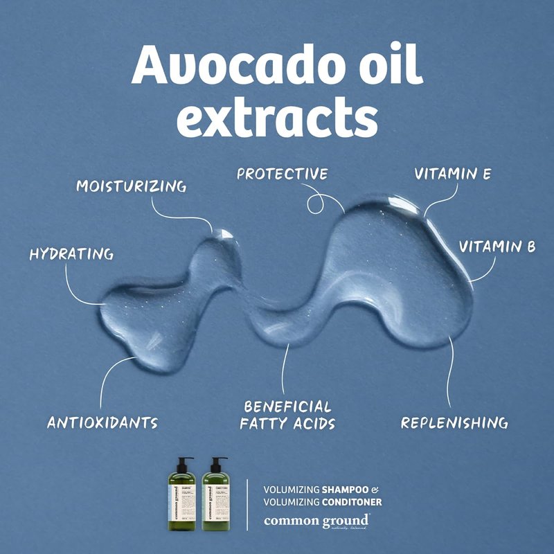 COMMON GROUND Volumizing Natural Shampoo, Paraben and Cruelty Free, Organic, Vegan, Plant-Based, Botanical Scent, Avocado Oil, pH5.5, Healthy Scalp, Shine, Color Safe for Men, Women