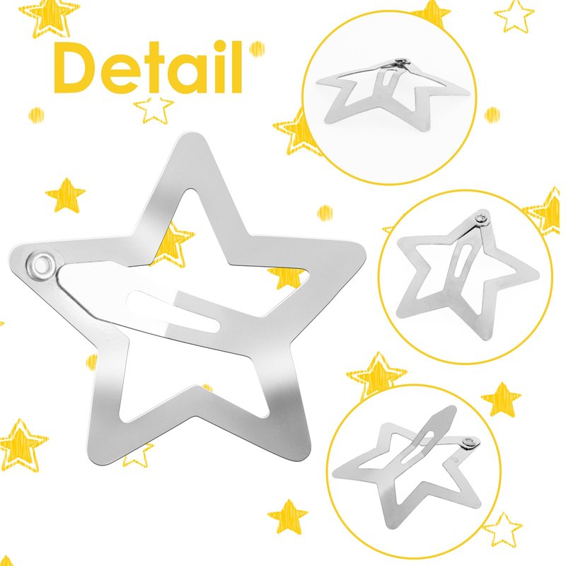 - 【Silver Star Hair Clips】These cute star hair clips are pentagonal snap clips. The hair style clips has a silver coating that gives off a unique metallic sheen. The hair snap clips is a decorative hairpin that every punk girl can’t resist! The rave accessories details are polished, so you don’t have to worry about damaging your scalp and hair.