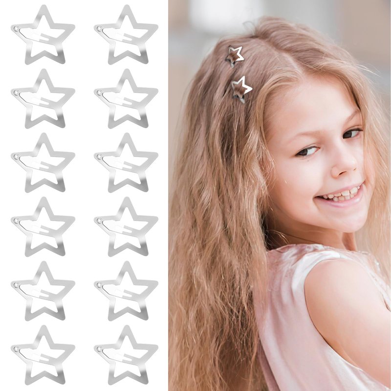 - 【What You Will Receive】You will get 12 pieces of silver Y2K star hair clips in two styles in one pack. These star hair clips are super cute and suitable for many hairstyles, such as bangs hair clips, side hair clips or ponytails, braided hair clips. You can wear in a variety of ways!