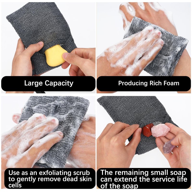 - 【High-quality materials】Exfoliating body scrubber is made of nylon, soap saver is durable and easy to produce rich foam. Drying soap holder can be quickly cleaned by just rinsing under the faucet. Bar soap scrubber pouch fits most soap racks or travel soap boxes